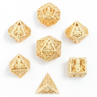 Mystery Set of 7 Matching Ornate Hollow Metal Polyhedral RPG Dice