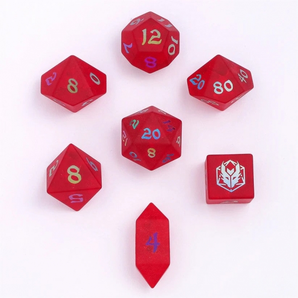 Blasted Frosted Glass Dice Set - Red