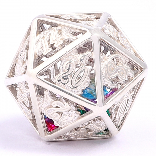 Hollow Dragon Dice Set filled with gems - Sterling Silver