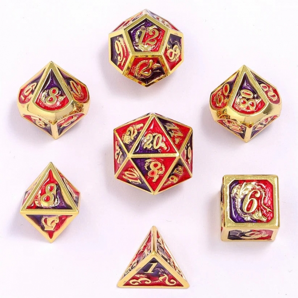 Solid Metal Dragon Dice - gold w/Red & Purple