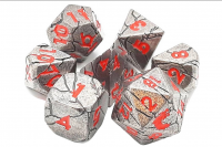 Old School RPG Metal Dice Set: Orc Forged - Ancient Silver w/ Red (7)