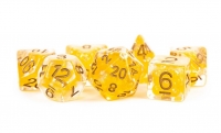 Polyhedral Dice Set: (Resin) Pearl Poly Set - Pearl Citrine w/ Copper Numbers 7-die set (16mm)