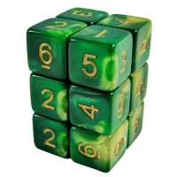 Green Stuff World: 12x D6 16mm Dice - Green Swirl