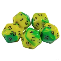Green Stuff World: 5x D20 20mm Dice - Lime Swirl