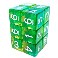 Green Stuff World: 12x D6 16mm Dice - Clear Green/Yellow