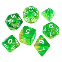 Green Stuff World: 7x Mix 16mm Dice - Clear Green/Yellow