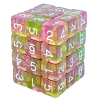 Green Stuff World: 36x D6 12mm Dice - Clear Lime and Pink