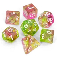 Green Stuff World: 7x Mix 16mm Dice - Clear Lime and Pink