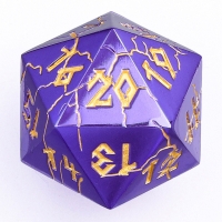 Barbarian 35mm Solid Metal Single D20 Spin Down - Purple and gold