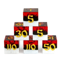 Solid Metal Mini Behemoth Dice set - Gold with Red and Black Enamel