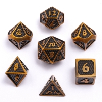 Draconis Solid Metal Polyhedral Dice set - Gold with Red & Black