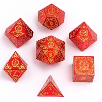 Solid Metal Fighter RPG Dice Set - Gold w/ Red & Black