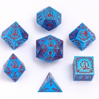 Wizard Solid Metal Polyhedral Dice Set - Blue with Red