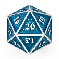 45mm Metal Behemoth Spindown D20 - Silver with Blue & Green