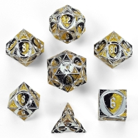 Solid Metal Fighter Class RPG Dice Set - Silver w/ Yellow & Black