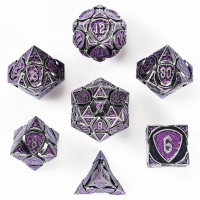 Solid Metal Fighter Class RPG Dice Set - Ancient Silver w/Purple Glitter