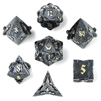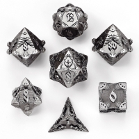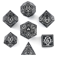 Solid Metal Druid RPG Dice Set - Black w/ White