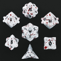 Solid Metal Paladin Class RPG Dice Set - Matt White/Blood Spatter