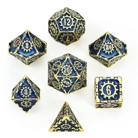 Solid Metal Cogcraft Polyhedral Dice Set - Vault Dweller - (Gold w/ Blue)