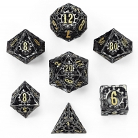 Hollow Metal Cogcraft Polyhedral Dice Set - Gunmetal w/Gold
