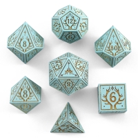 Solid Metal Druid RPG Dice Set - Cyan w/ Gold
