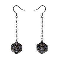 Dragon's Eye D20 Dice Earrings - Gunmetal with Purple Gems