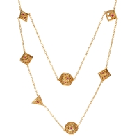 Dragon's Eye 7-die Necklace - Gold with Ruby Red Gems