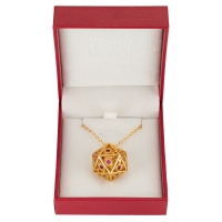 Dragon's Eye D20 Necklace - Gold with Ruby Gems