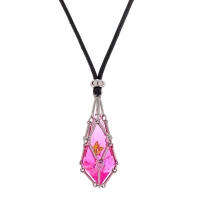 Dragon's Eye D20 Necklace - Silver with Pink Gems