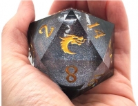 Old School RPG Dice: Sharp Edged Liquid Infused 35mm D20 - Obsidian Fury (1)