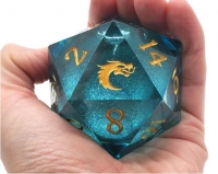 Old School RPG Dice: Sharp Edged Liquid Infused 35mm D20 - Azure Fury (1)