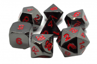 Old School RPG Metal Dice Set: Dragon Forged - Platinum Black & Red (7)