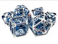 Old School RPG Metal Dice Set: Dragon Forged - Blue & White w/ Black Nickel (7)