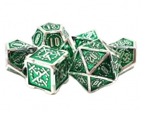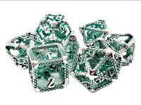 Old School RPG Metal Dice Set: Hollow The Kraken - Silver w/ Green (7)