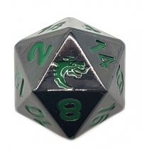 Old School RPG Metal Dice: Gnome Forged 40mm D20 - Black Nickel w/ Green