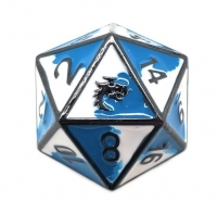 Old School DnD RPG D20 Metal Dice: Dragon Forged - Blue & White w/ Black Nickel