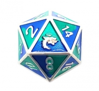Old School DnD RPG D20 Metal Dice: Dragon Forged - Platinum Blue & Green