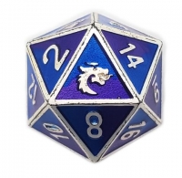 Old School DnD RPG D20 Metal Dice: Dragon Forged - Platinum Purple & Blue