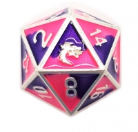 Old School DnD RPG D20 Metal Dice: Dragon Forged - Platinum Purple & Pink
