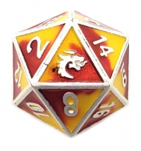 Old School DnD RPG D20 Metal Dice: Dragon Forged - Platinum Red & Yellow