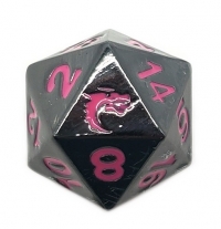 Old School RPG Metal Dice: Metal D20 Halfling Forged - Black Nickel w/ Pink