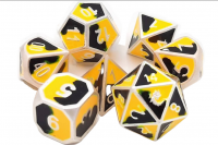 Old School RPG Metal Dice Set: Dragon Forged - Black & Yellow w/ Silver Platinum (7)