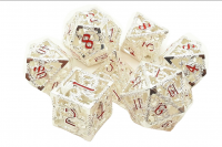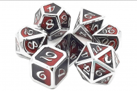 Old School RPG Metal Dice Set: Hollow Dragon Dice - Silver w/ Red (7)