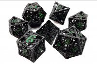 Old School RPG Metal Dice Set: Hollow Dragon Dice - Black w/ Green (7)