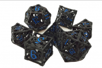 Old School RPG Metal Dice Set: Hollow Dragon Dice - Black w/ Light Blue (7)
