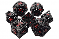 Old School RPG Metal Dice Set: Hollow Dragon Dice - Black w/ Red (7)