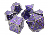 Old School RPG Metal Dice Set: Hollow Dragon Dice - Silver w/ Purple (7)