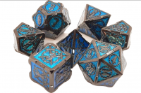 Old School RPG Metal Dice Set: Hollow Dragon Dice - Silver w/ Blue (7)