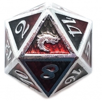 Old School RPG Metal Dice: 23mm Dragon Scale d20 - Black w/ Red