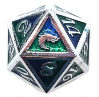 Old School 22mm D20 Metal Die: Knights of the Round Table - Spectral w/ Silver